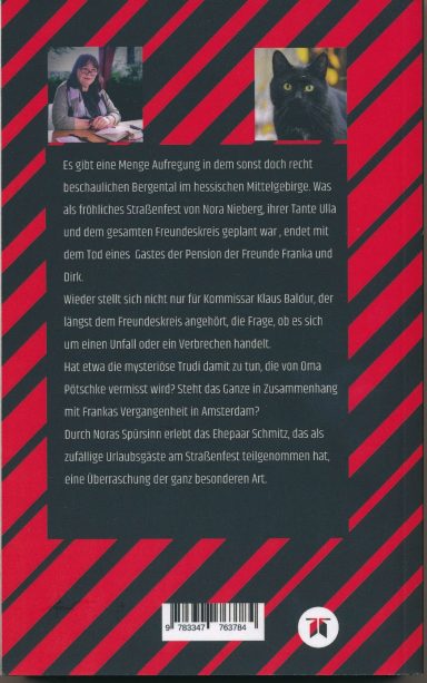 Band 3 der Trilogie: Was als fröhliches Straßenfest begann, endet mit dem Tod eines der Besucher. War es ein Unfall oder Mord? Hat die mysteriöse Trudi etwas damit zu tun, die von der Nachbarin vermisst wird? Auch dieses Mal geraten wieder Personen aus Noras nahem Umfeld unter Verdacht.