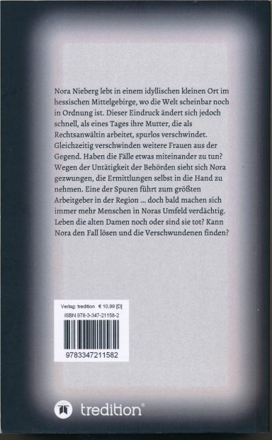 Dies ist Band 1 der Nora-Nieberg-Trilogie: Im idyllischen Bergental, im hessischen Mittelgebirge, verschwinden mehrere alte Damen. Leben diese noch?
